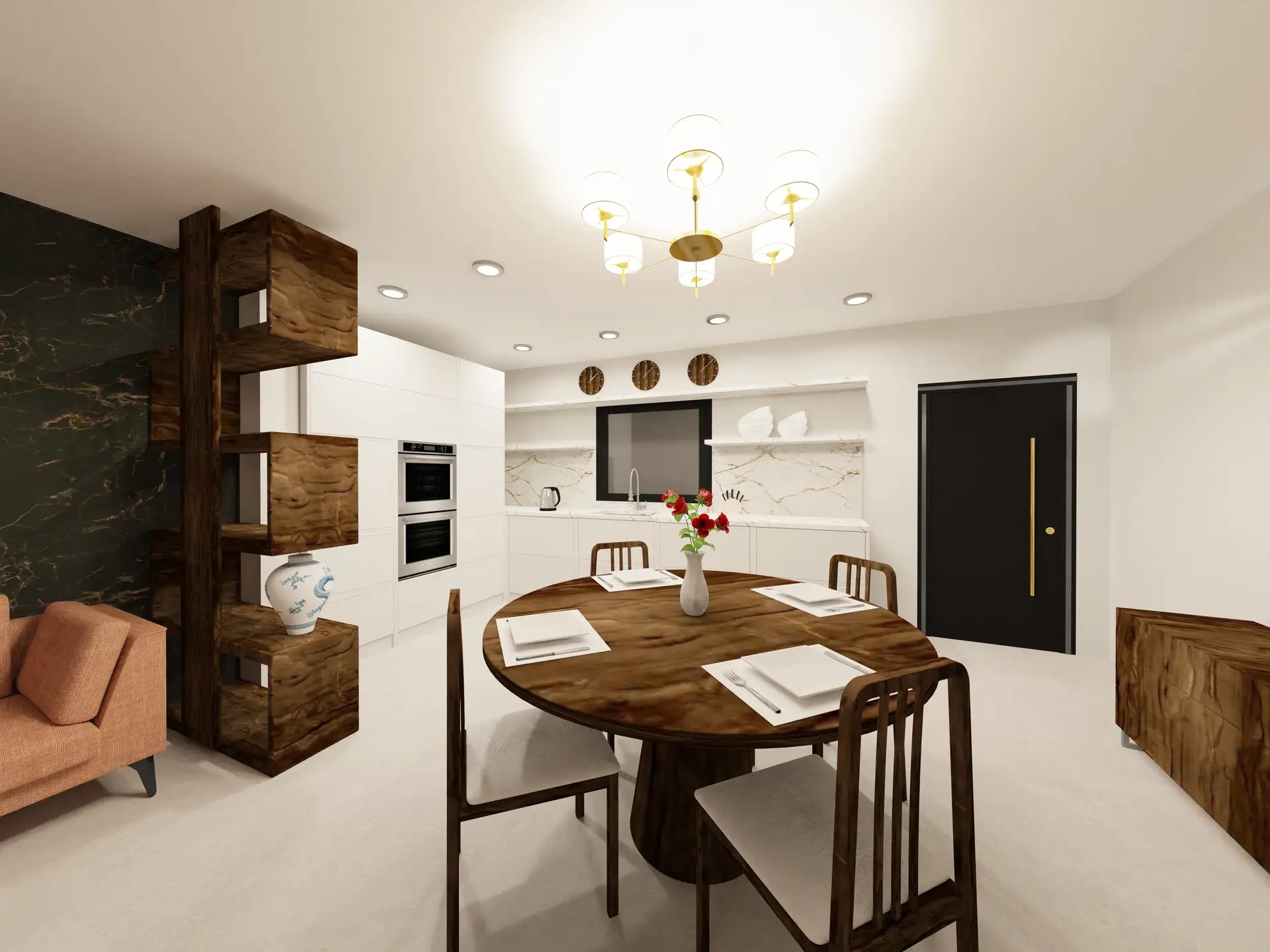 Renovation of a Surrey house into a luxury home including entrance, living room and kitchen.