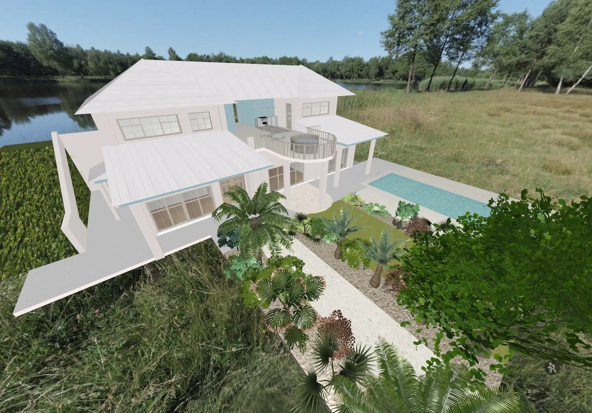 Design of estate agency, including landscape and off-site abode.